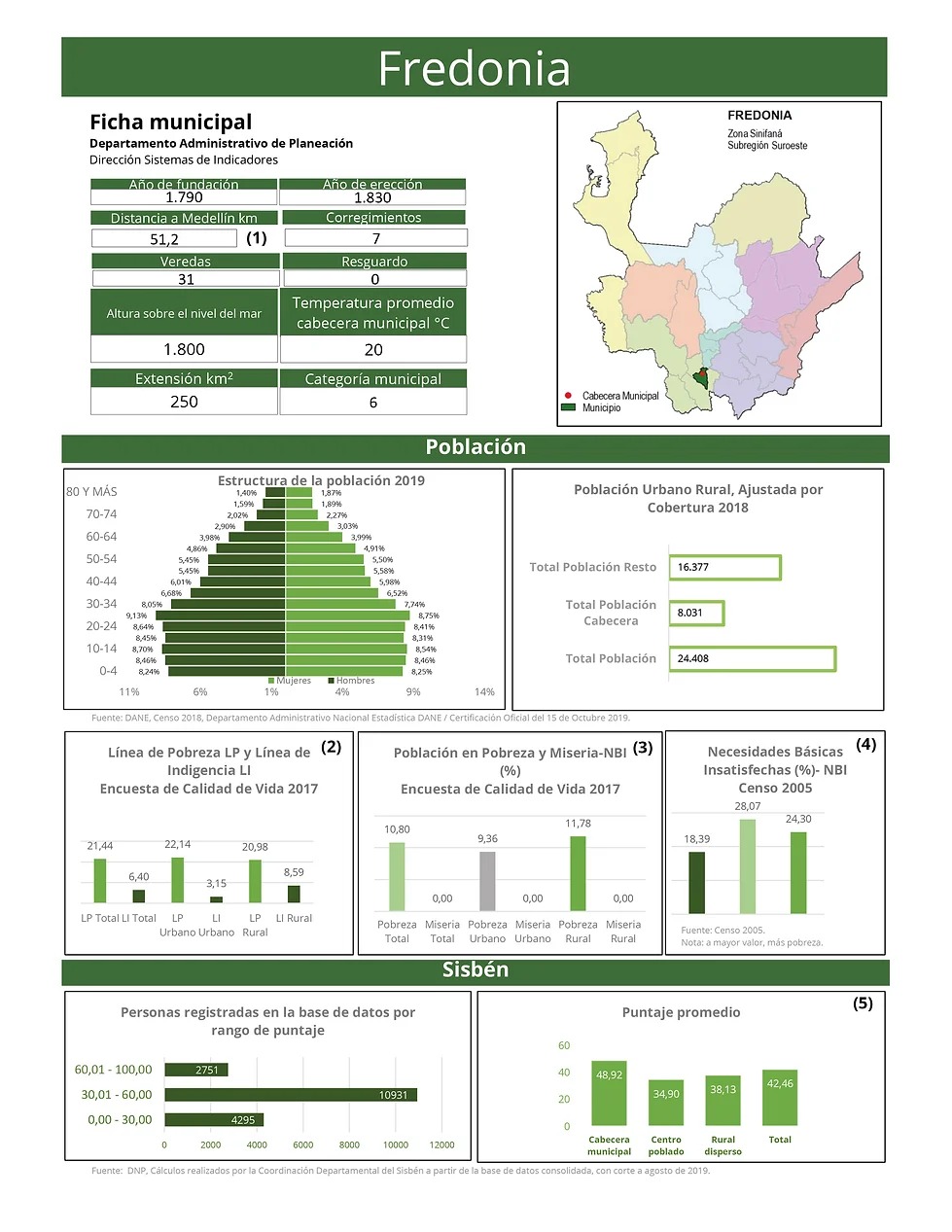 Fredonia es un municipio colombiano ubicado en el departamento de Antioquia. Forma parte de la subregión Suroeste. Limita al norte con los municipios de Venecia, Amagá y Caldas, al oriente con Santa Bárbara, al occidente con Tarso y Jericó y al sur con Támesis, Valparaíso y La Pintada