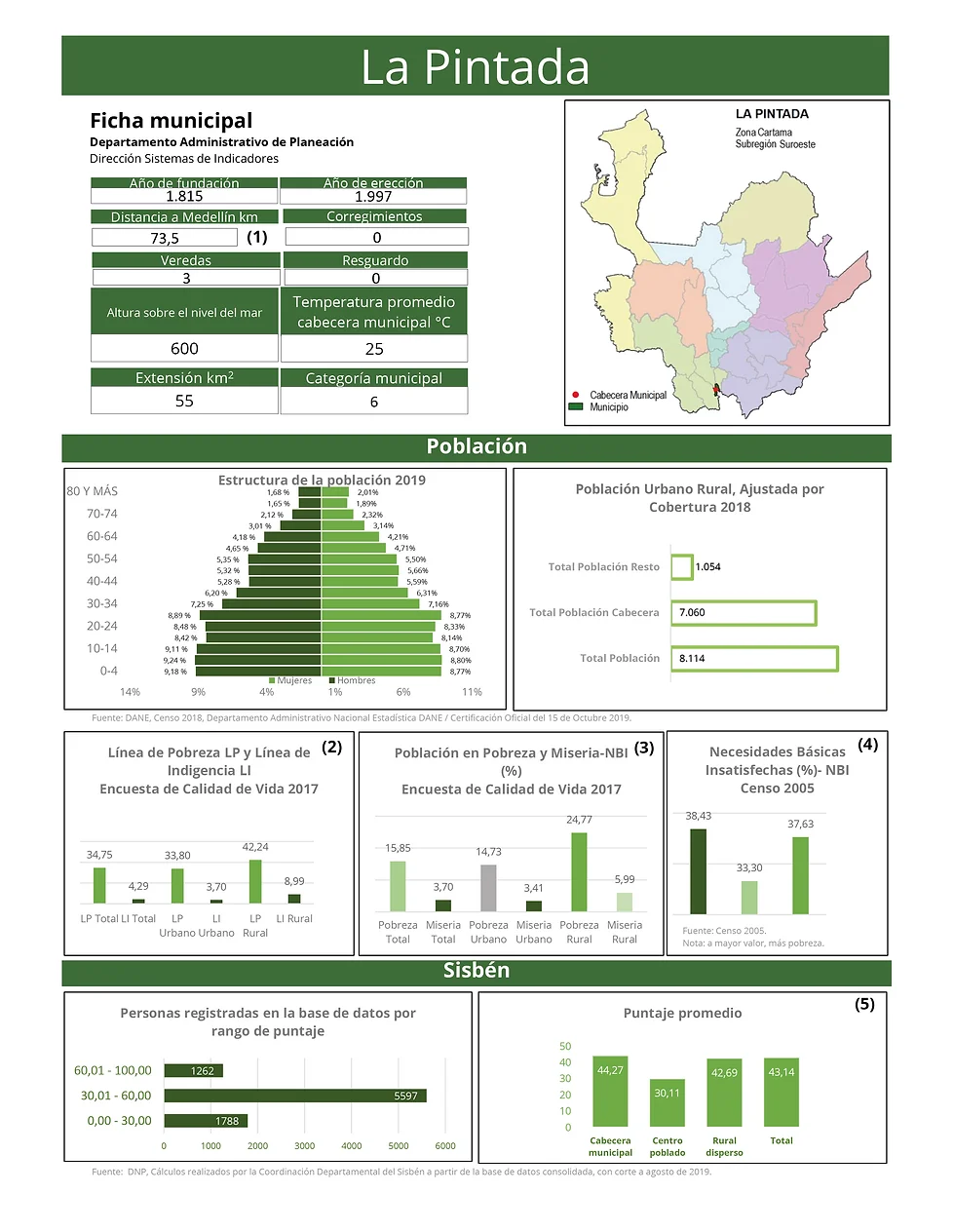 La Pintada es un municipio de la República de Colombia, situado en la subregión Suroeste del departamento de Antioquia. Limita al norte con los municipios de Fredonia y Santa Bárbara, por el oriente limita también con el municipio de Santa Bárbara; por el sur a su vez con el municipio de Valparaíso y con Aguadas (Caldas); y por el occidente con los municipios de Valparaíso, Fredonia y Támesis. El territorio del municipio es atravesado por el río Cauca. Tiene una extensión de 55 kilómetros cuadrados, superficie que resultó de la fusión, según dictamen del gobierno en su tiempo, de dos áreas diferentes que pertenecían respectivamente a los municipios de Santa Bárbara y Valparaíso. Entre los apelativos que la población tiene están “Emporio Turístico de Antioquia”, “La Mejor Esquina de Antioquia”, “La Puerta de Antioquia”.