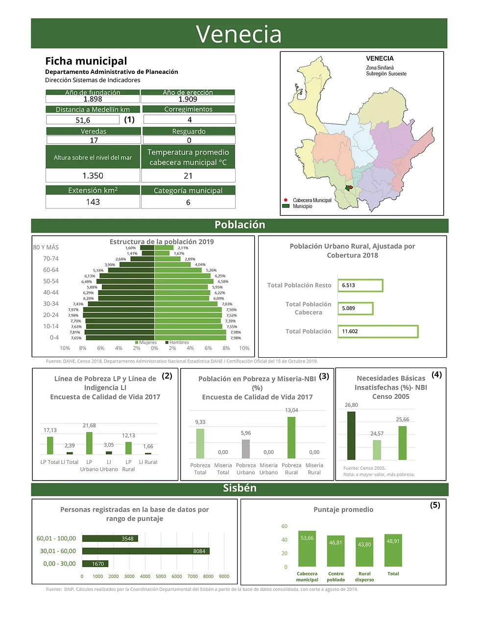 Vecenia Venecia es un municipio de Colombia, localizado en la subregión Suroeste del departamento de Antioquia. Limita por el norte con los municipios de Titiribí y Amagá, por el este con el municipio de Fredonia, por el sur con los municipios de Fredonia y Tarso, y por el oeste con los municipios de Concordia y Salgar. Su cabecera dista 60 km de la ciudad de Medellín, capital del departamento de Antioquia. El municipio posee una extensión de 141 km².